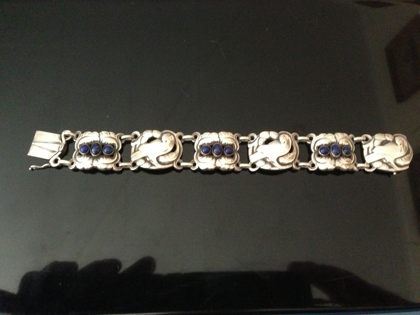 Gammelt Georg Jensen Sterling Sølv Armbånd med Lapis Lazuli No 14. Måler 19cm og er i god stand.