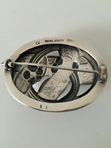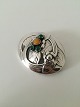 Georg Jensen Silver Brooch with Ambor and Green stones No 13. From 1904-1914. Measures 5 cm / 1 31/32 in. x 3.9 cm / 1 17/32 in. Weighs 11 g / 0.35 oz.