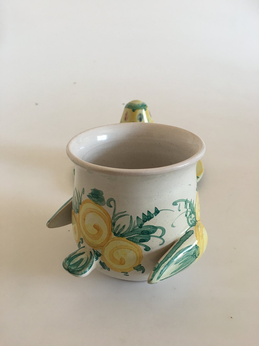 Bjørn Wiinblad Vase med låg V66 fra 1976. Måler 18cm og er i god stand, men har afslag ved bunden af vase.