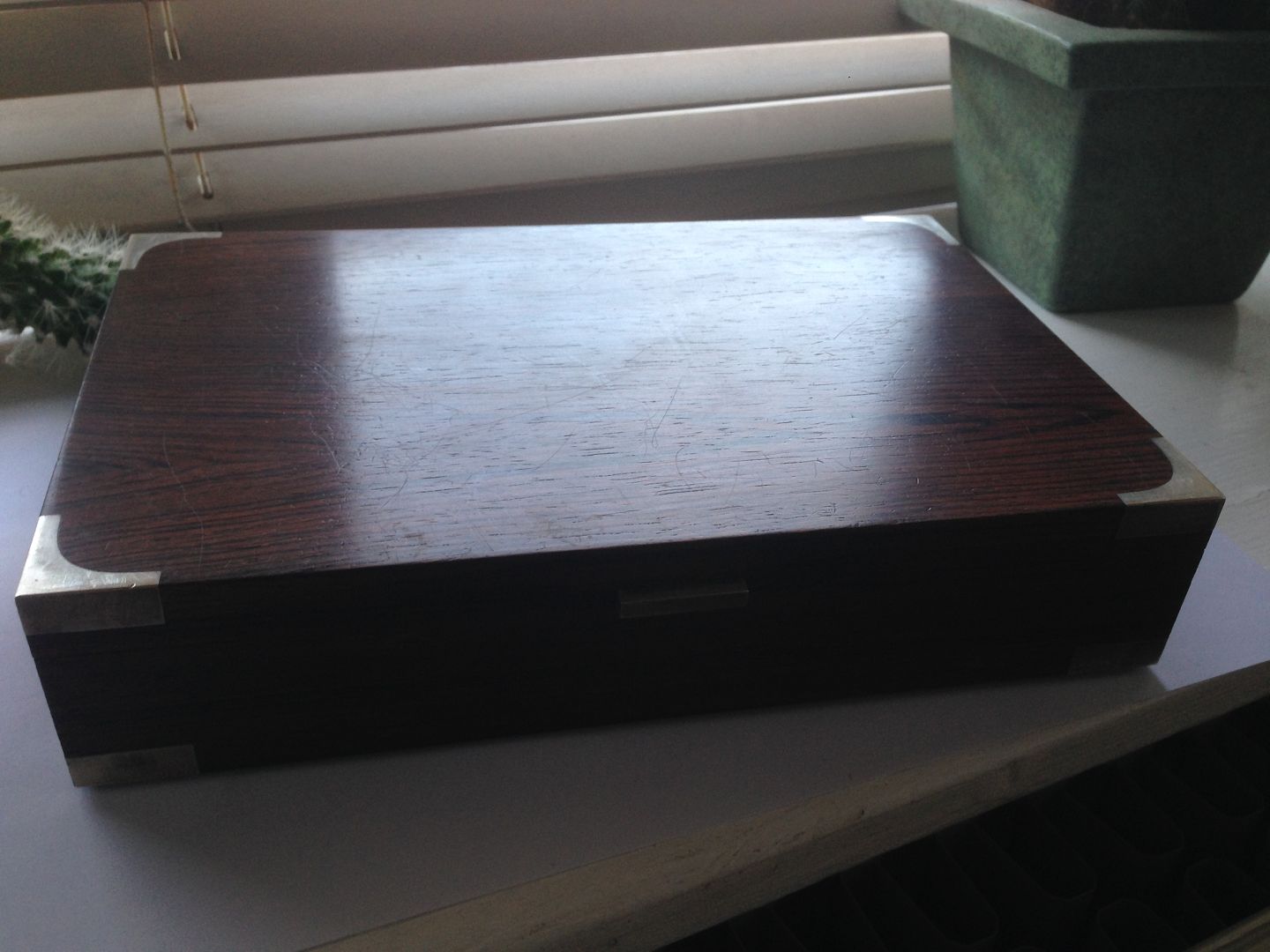 Hans Hansen Sterling Sølv og Palisander boks. Måler H. 4,7. L. 22,5. B. 14,8 cm og er i god stand.