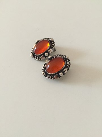 Georg Jensen Sterling Silver Annual Earclips with amber from 1995. Measures 2.3 cm / 0 29/32 in. Weighs 14 g / 0.50 oz.