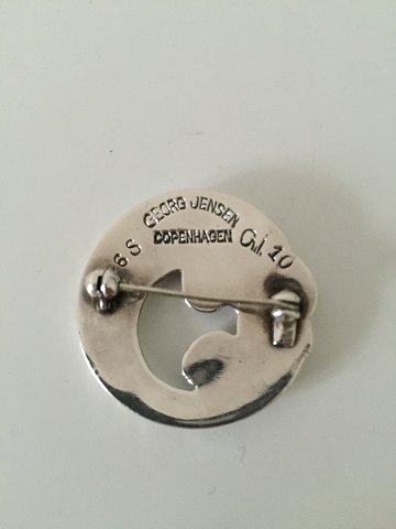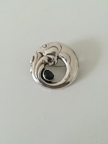 Early Georg Jensen Silver Brooch with fish motif and moonstone No 10. Measures 3,2cm (1 17/64"). Weighs 7g / 0,25oz