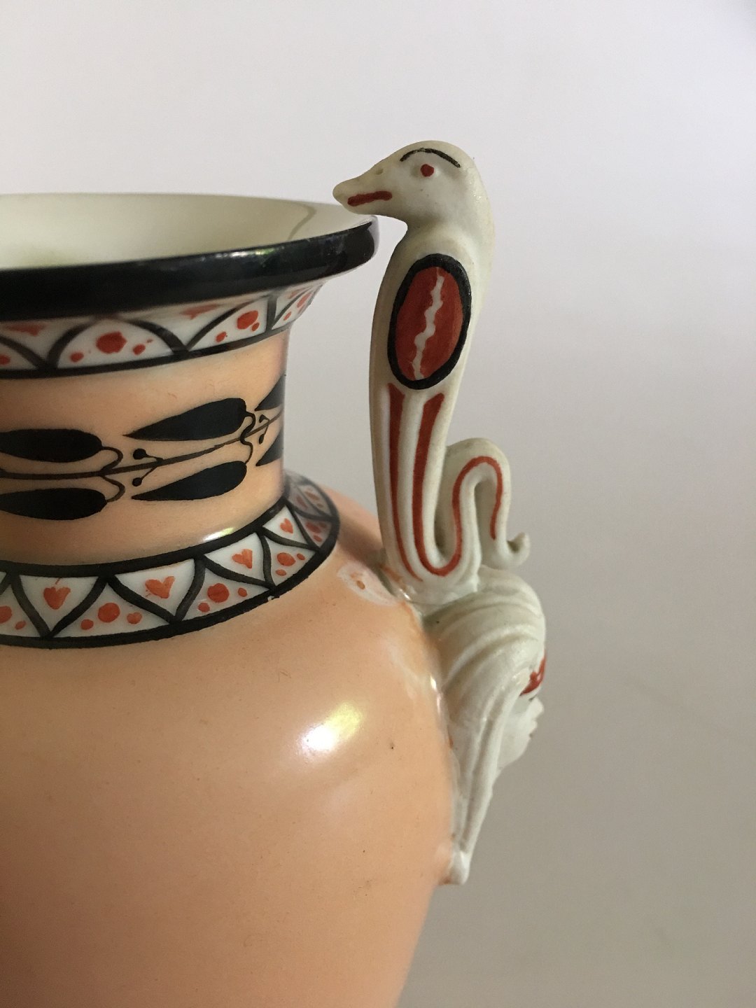 Pair of Royal Copenhagen Empire Vases with Egyptian motifs from 1850-1870. Measures 14cm high is in good condition, but one vase has chip.