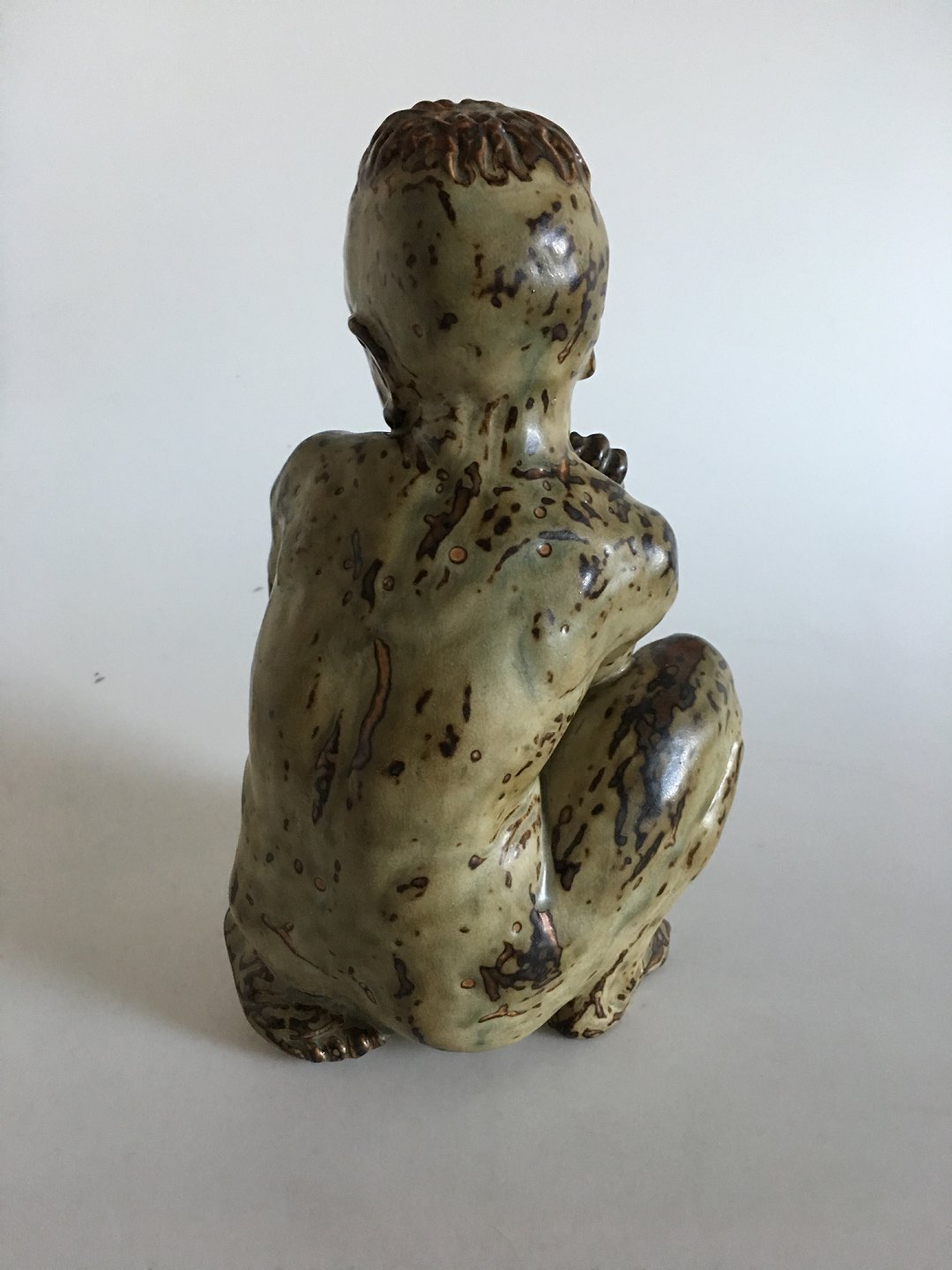 Royal Copenhagen Stoneware figurine of African boy with cat no. 20244. Measures 27cm and designed by Knud Kyhn.