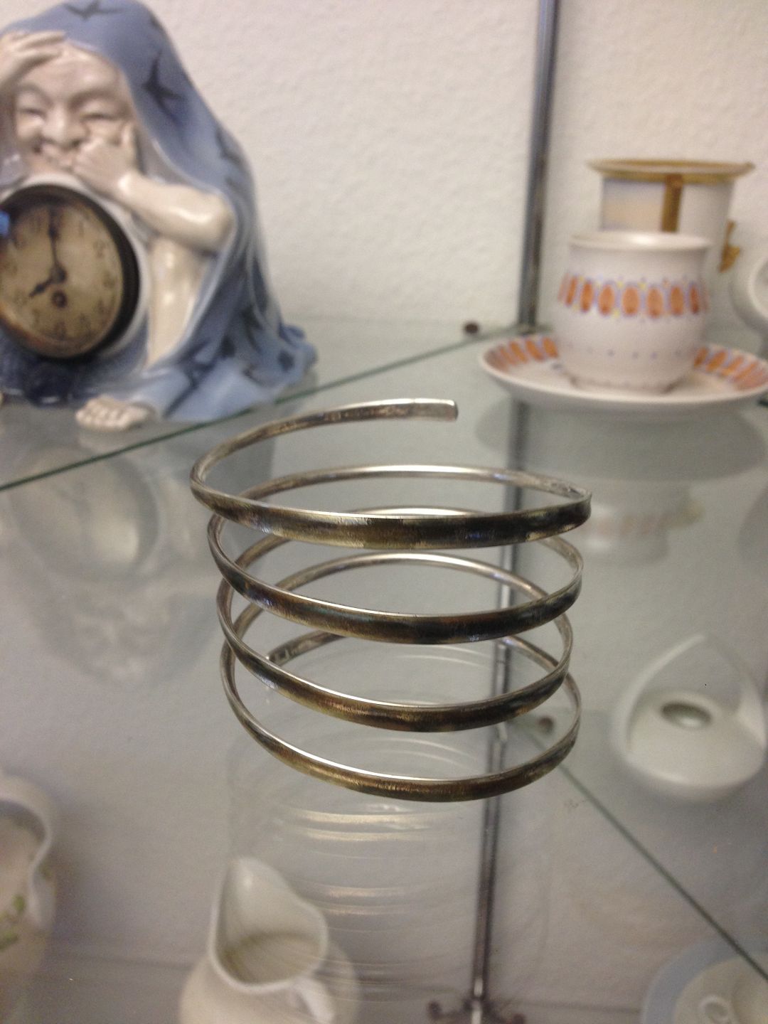 Hans Hansen Bracelet partly gilded Sterling Silver No 297. Measures 7cm dia and 6,5cm wide. The flat top part is gilded.