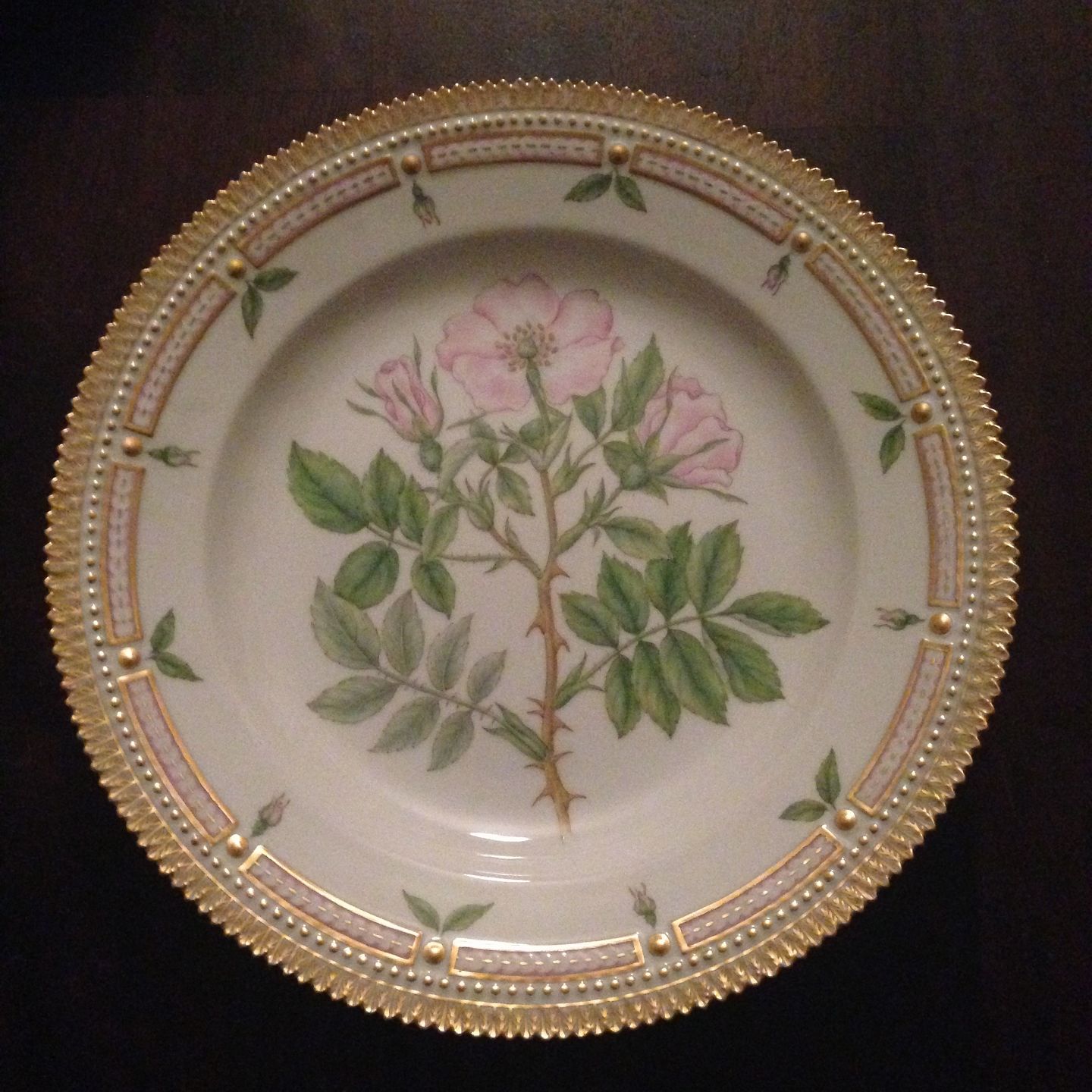 Royal Copenhagen Flora Danica Spisetallerken No 3549. Måler 25cm og er i perfekt stand. Latin name: "Rosa mollissima Willd."