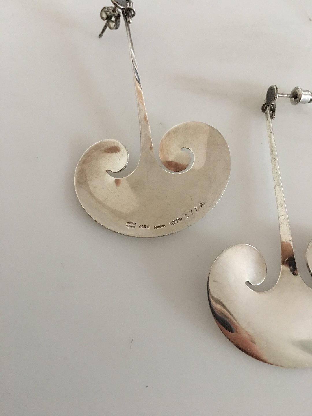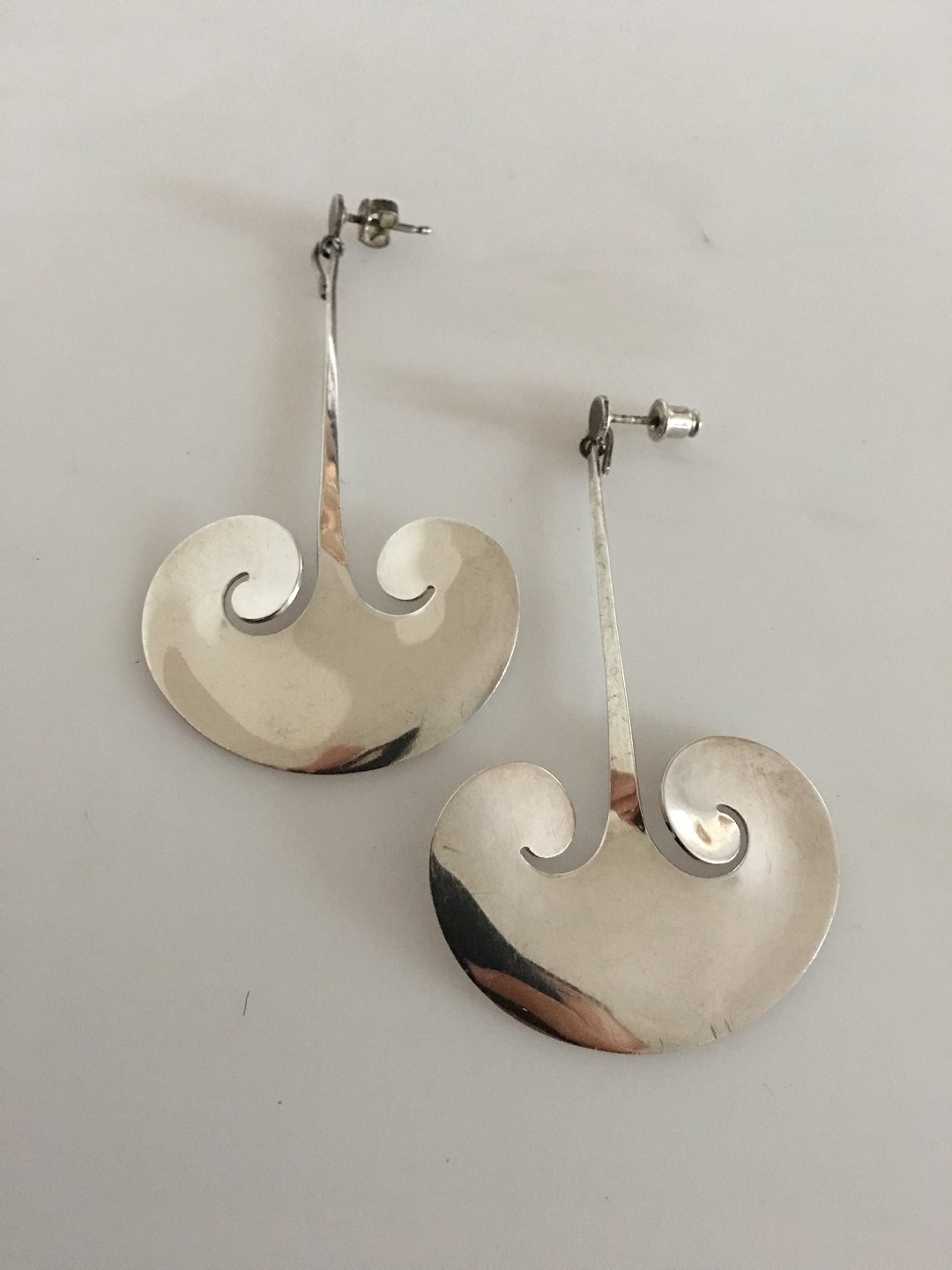 Georg Jensen Sterling Silver Earrings designed by Torun No 372A. Measures 7.2 cm / 2 53/64 in. Weighs 15 g / 0.53 oz.