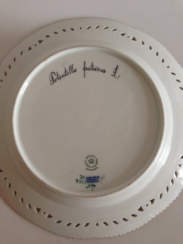 Royal Copenhagen Flora Danica Dinner Plate with pierced border 20/3553. Measures 25cm/ 9 27/32" and is in good condition. Latin inscription: "Acer platanoides L."Latinsk navn: "Potentilla fruticosa L."