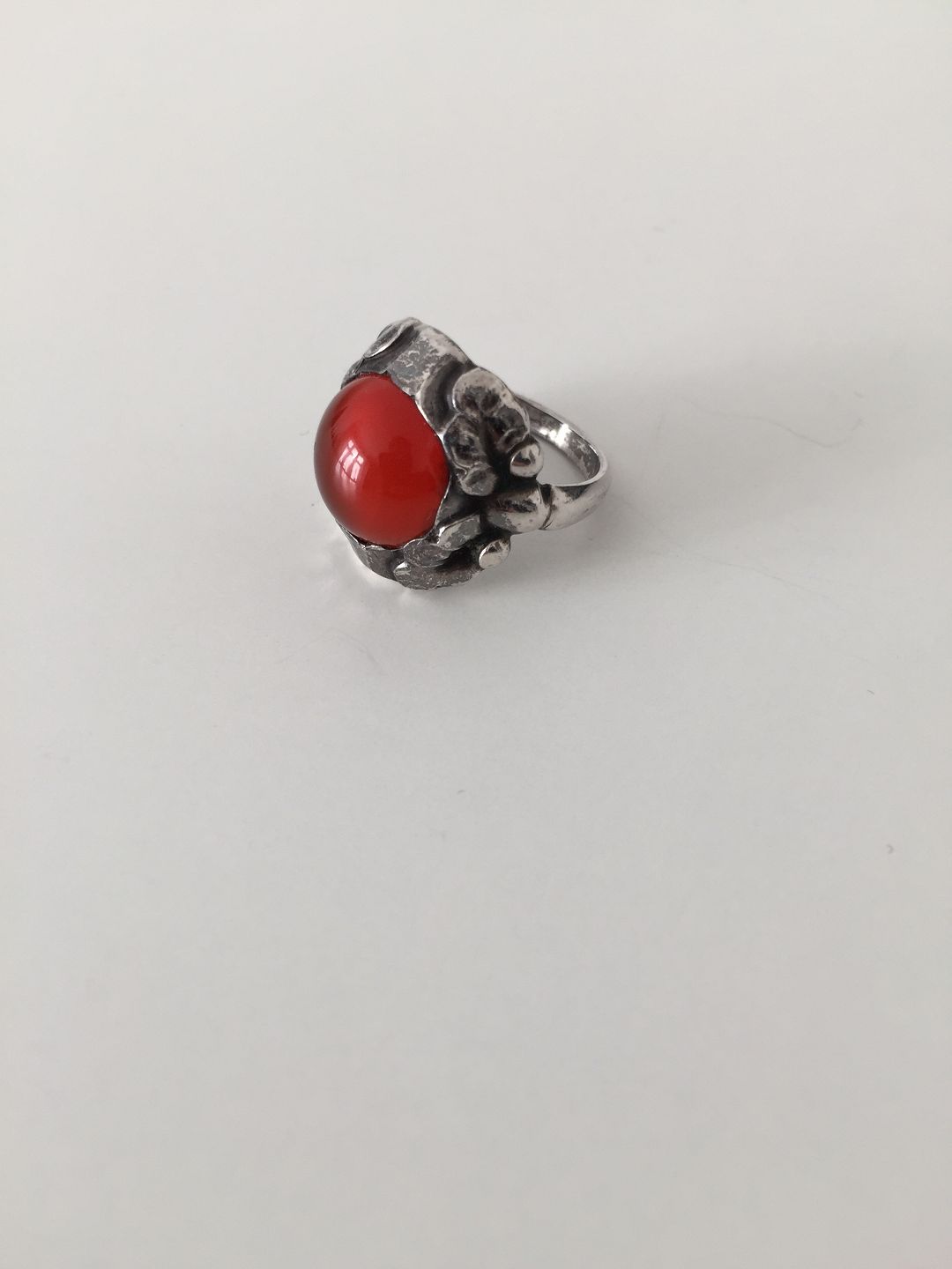 Georg Jensen Sterling Silver Ring with red stone No 11A from 1933-1944. Ring Size 50 / US 5 1/4. Weighs 5 g / 0.18 oz.