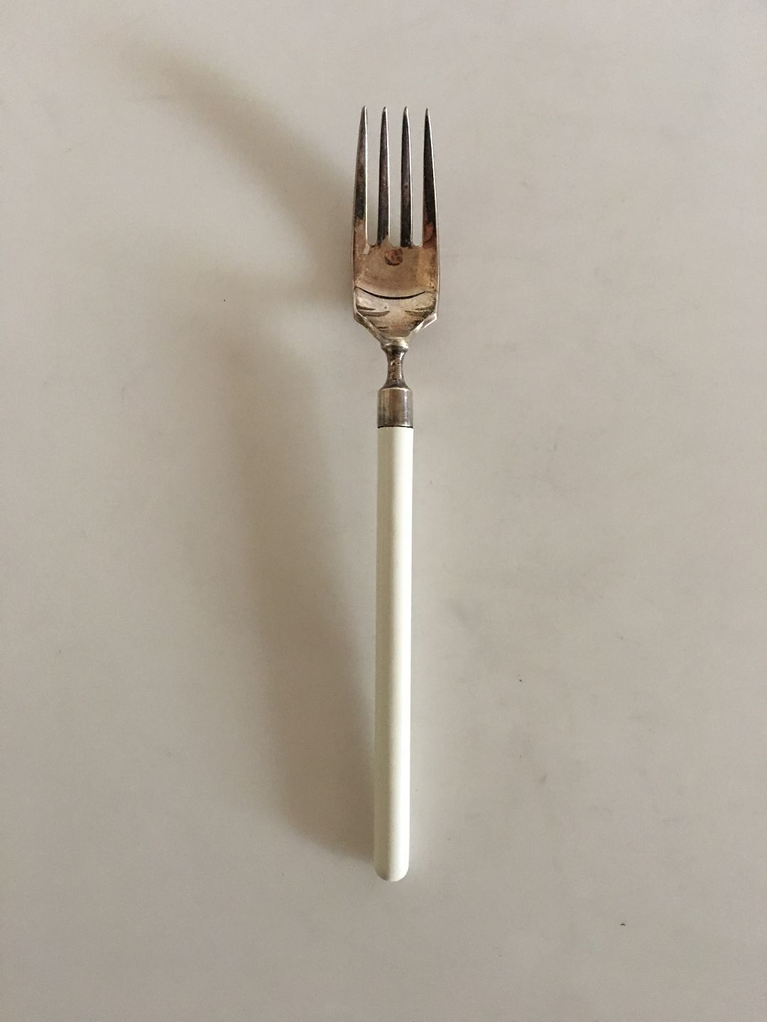 Hans Hansen Amalie Sølv Frokost Gaffel med Hvidt håndtag. Måler 17cm.