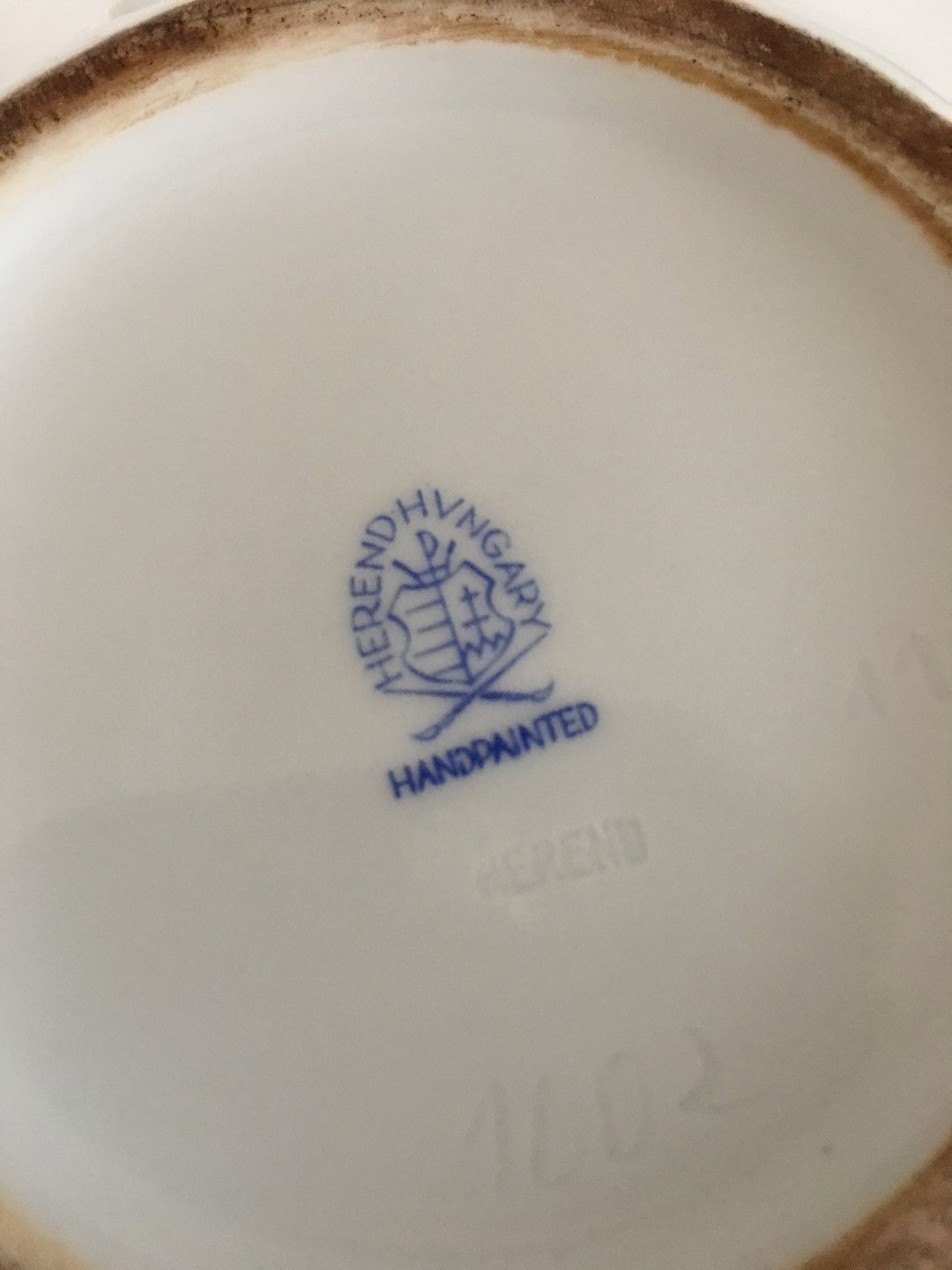 Herend Ungarn Thekande, håndmalet blomster. Har hårrevne og lille afslag. Måler 27cm.