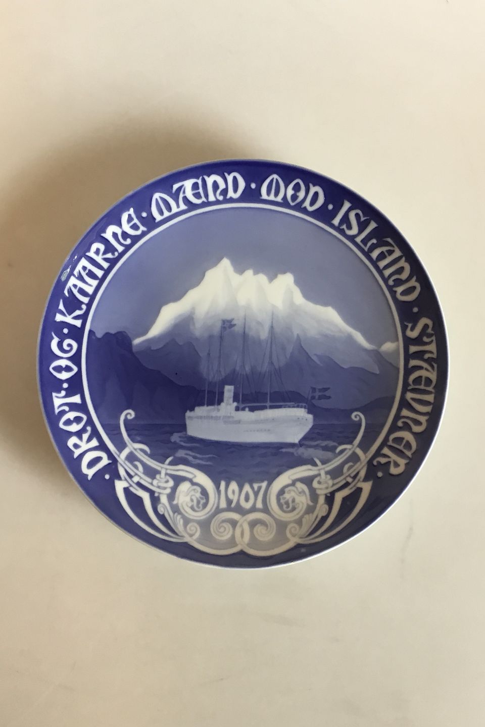Bing & Grondahl Commemorative Plate from 1907 BG-CM24. The Royal Ship "Dannebrog" Iceland trip. Measures 23 cm / 9 1/16 in.