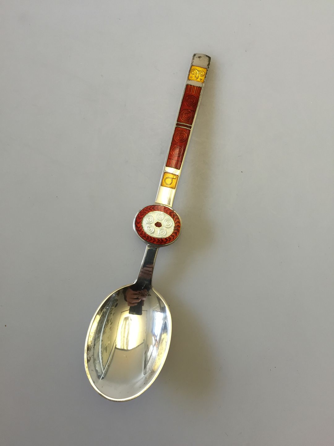 A. Michelsen Sterling Silver with Enamel Spoon of the Month no. 4 designed by Paul René Gauguin. Measures 15,5 cm (6")