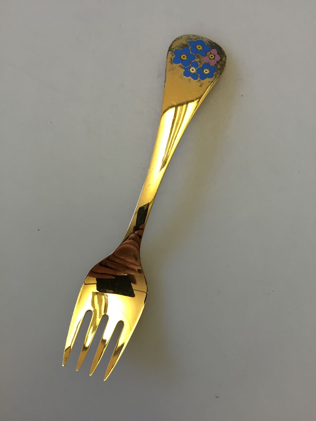 Georg Jensen Annual Fork 1980 in gilded Sterling Silver with enamel. Measures 14,5 cm (5 45/64")