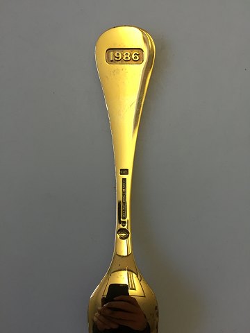 Georg Jensen Annual Fork 1986 in gilded Sterling Silver with enamel. Measures 14,5 cm (5 45/64")