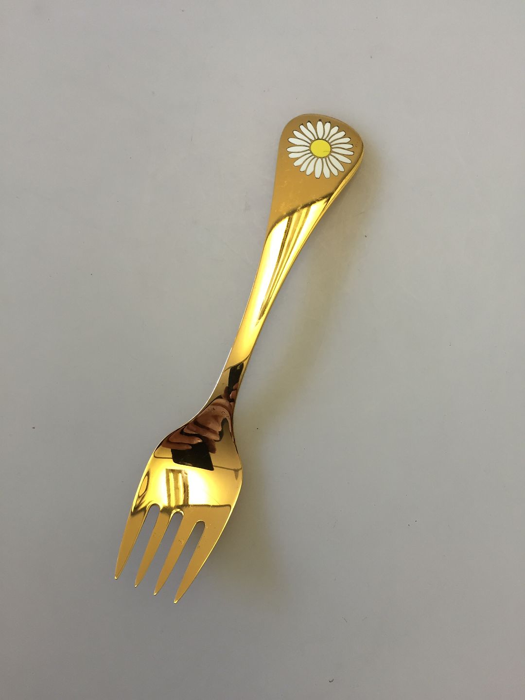 Georg Jensen Annual Fork 1987 in gilded Sterling Silver with enamel. Measures 14.5 cm (5 45/64")