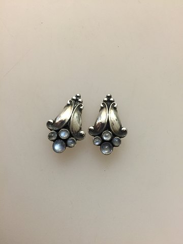 Georg Jensen Sterling Silver and Moonstone Earclips No 32B from after 1945.