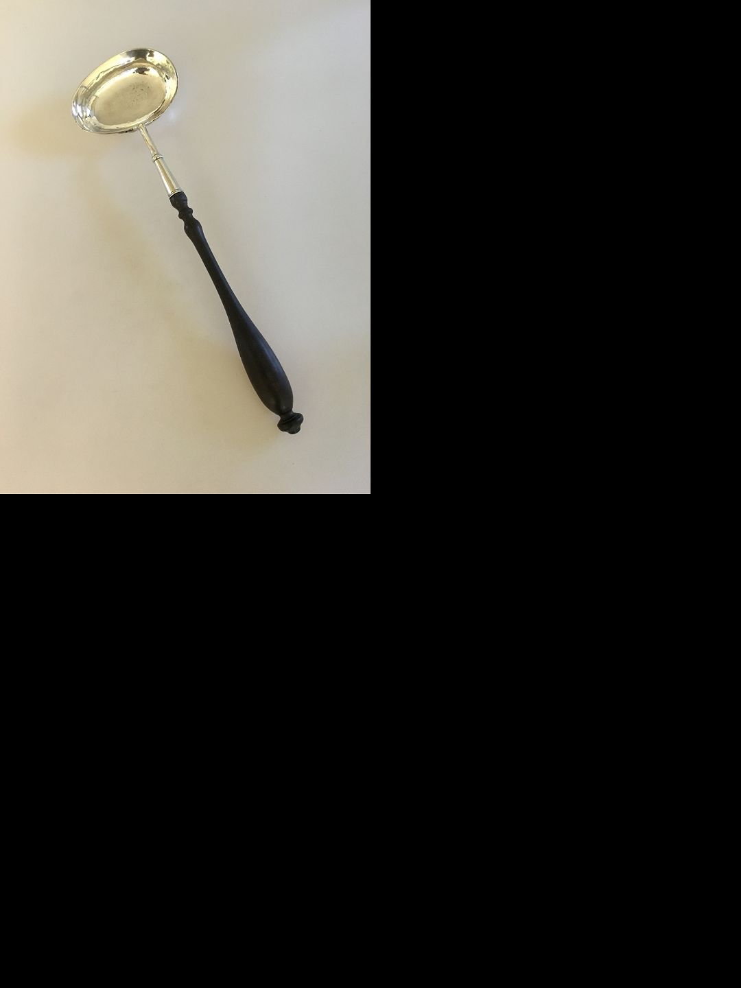 Stor gammel sølv punch ske / øse med skaft af træ