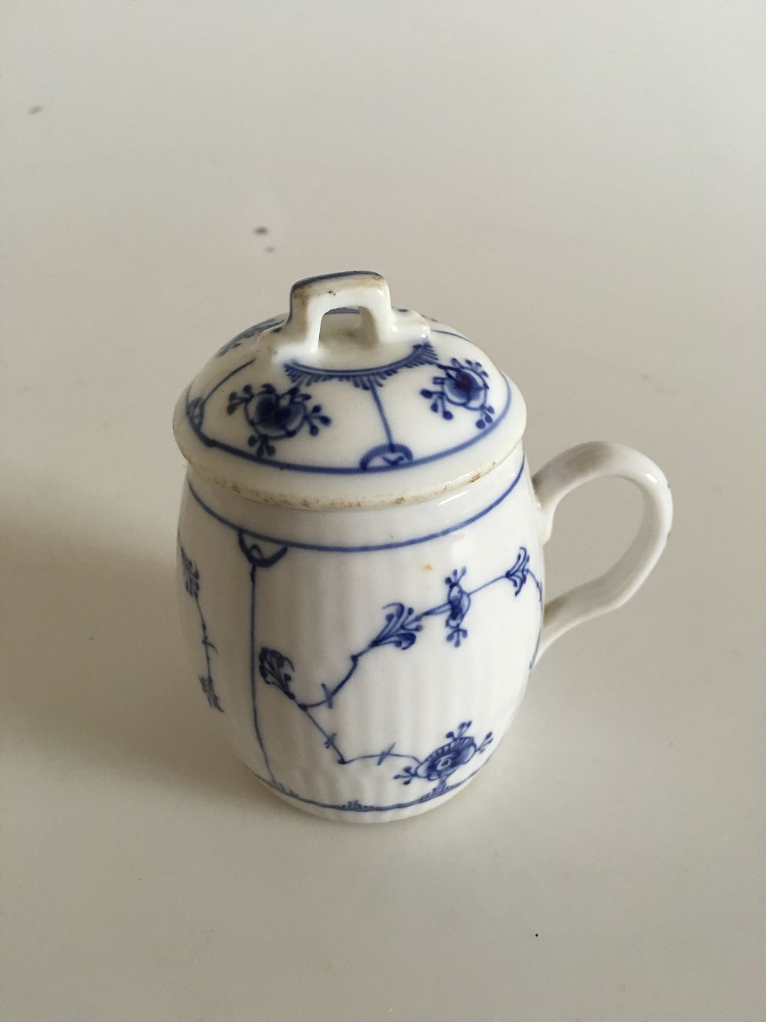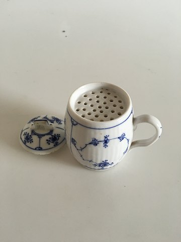 Royal Copenhagen Musselmalet Riflet Strøbøsse med Låg. 8 cm høj.
