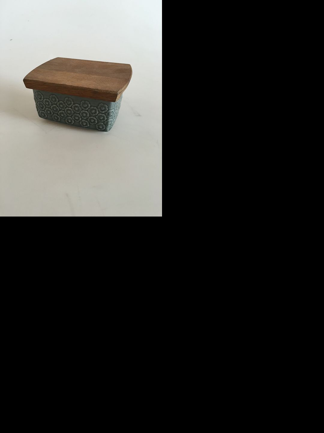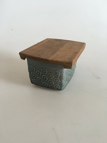 Bing & Grøndahl Kronjyden Grøn Azur Smørboks med Trælåg. Måler 11 cm x 8 cm x 6 cm