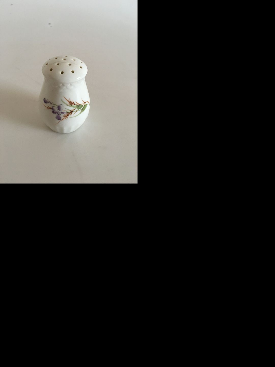 Bing & Grondahl Salt Shaker with Purple Flower. 7.5 cm tall (2 61/64")
