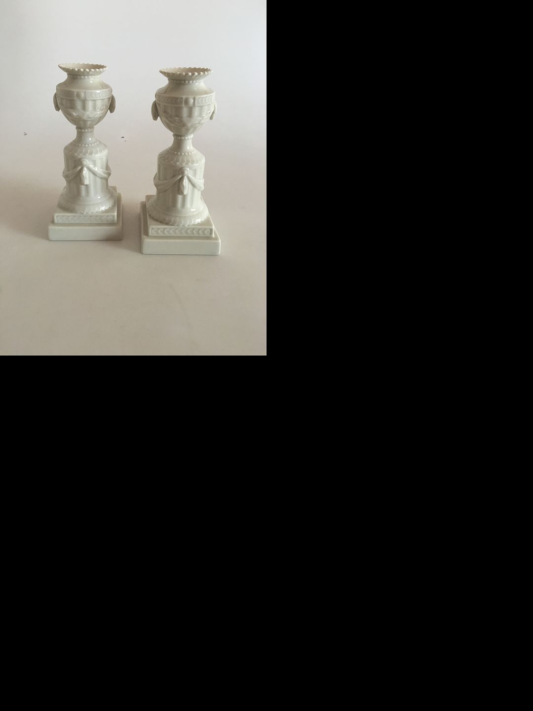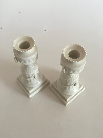 Royal Copenhagen Hvid Flora Danica Sæt af Lysestager. 17 cm høje. I fin stand