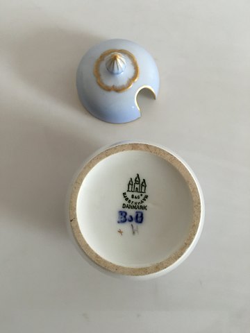 Bing & Grøndahl Måge med Guld Marmelade Krukke med Låg. 12.5 cm høj