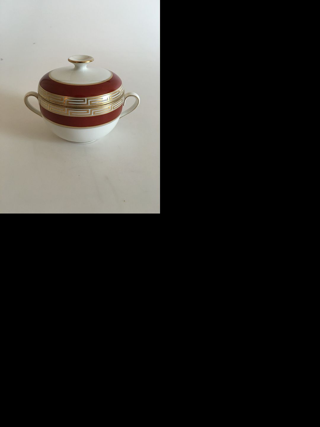 Bing & Grondahl Wagner Sugarbowl No 94. Wine Red and Gold Border. Measures 6.5 x 9.5 cm (2 9/16" x 3 47/64")