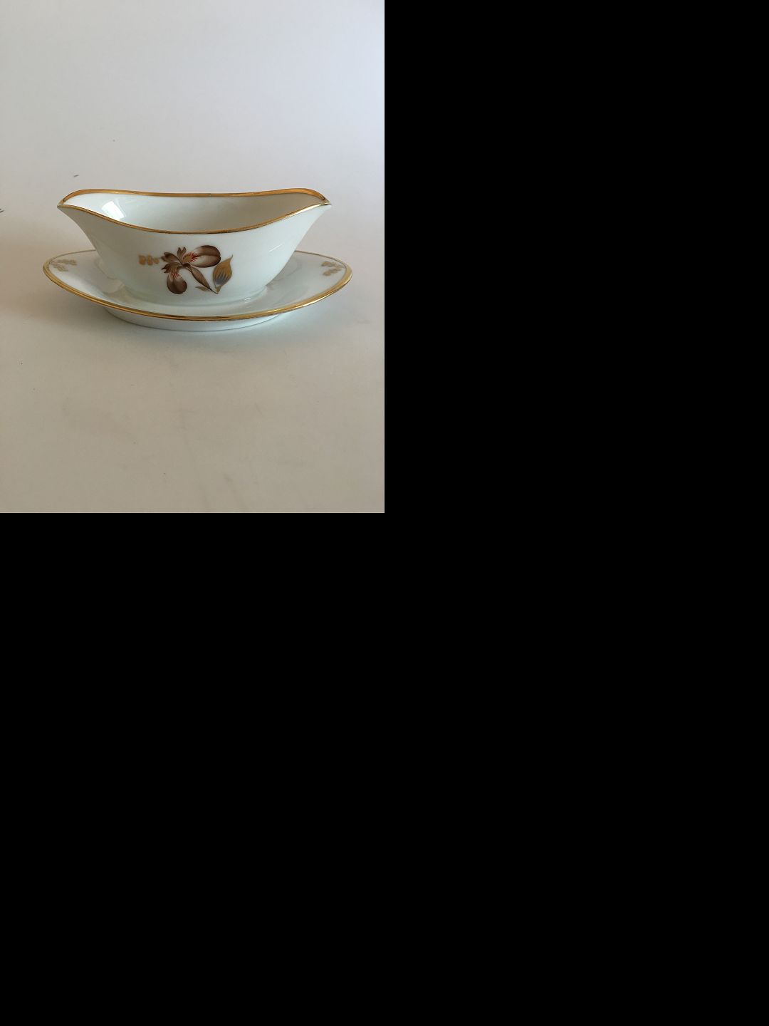 Royal Copenhagen Brown Iris Sauceboat No 9344. 8 cm tall. 22 cm long.