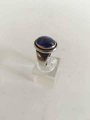 Georg Jensen Sterling Silver Ring No 46B Ornamented with Violet Stone. Ring Size 56. Weighs 7 g. From 1933-1945