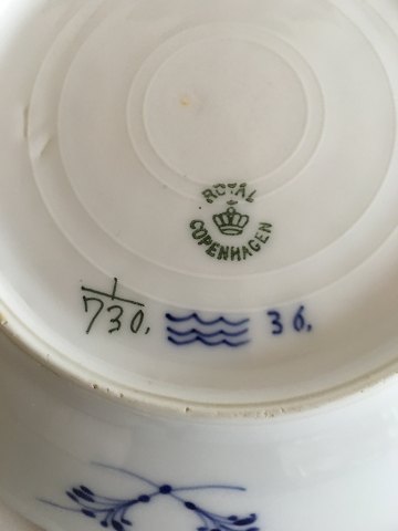 Royal Copenhagen Musselmalet Half Laced Compote Bowl No 730. The bowl has a small chip underneath the place (se picture). Measures 21 cm (8 17/64)