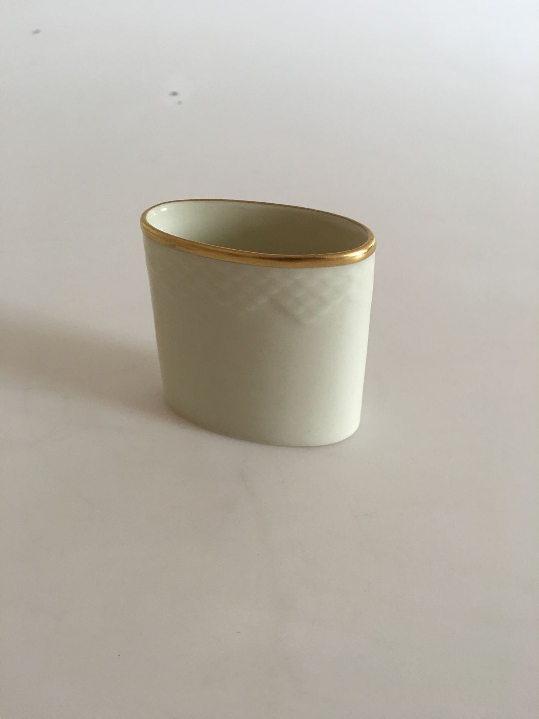 Bing & Grondahl Aakjaer Oval Toothpick Cup No 183. Creme with Gold Border. 7 cm. In good condition.