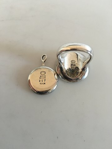 Georg Jensen Sterling Sølv Torun Ring No 350 og Vedhæng No 207. Samlet vægt 28 g. Ring Str. 52. Vedhæng måler 2 cm Ø.