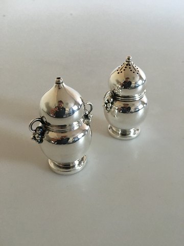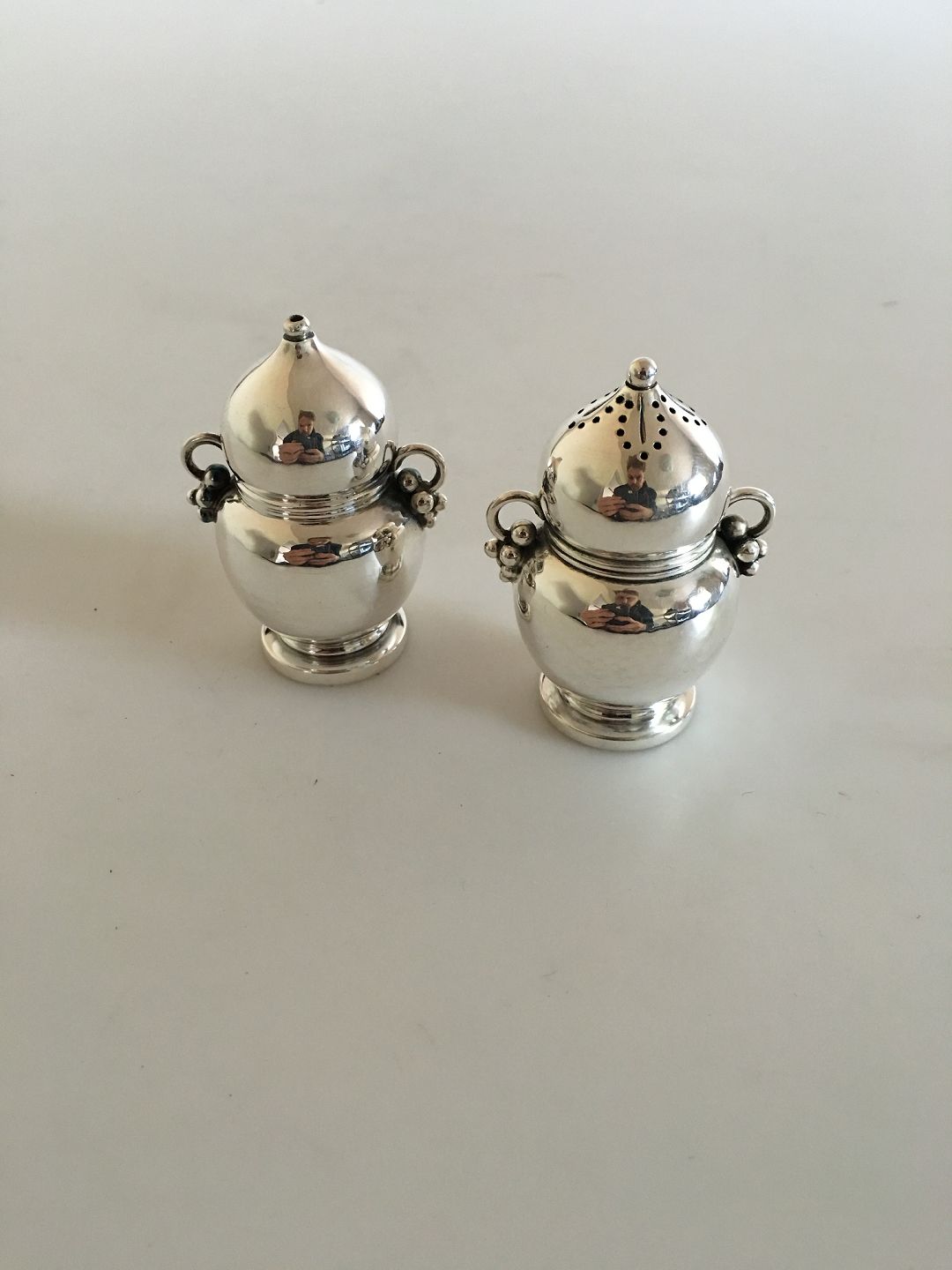 Georg Jensen Sterling Sølv Harald Nielsen Salt og Peber Sæt No 724. I perfekt stand fra efter 1945. Måler 6.5 cm høje. Vejer tilsammen 95 g.