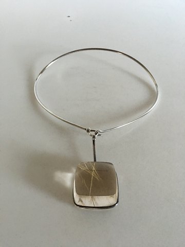 Georg Jensen Sterling Silver Torun Neckring No 174 with Pendant No 132. In Rutil Quartz.The neckrings diameter is 15 cm (5 29/32"). The pendant measures 3.5 x 3.5 cm (1 3/8")