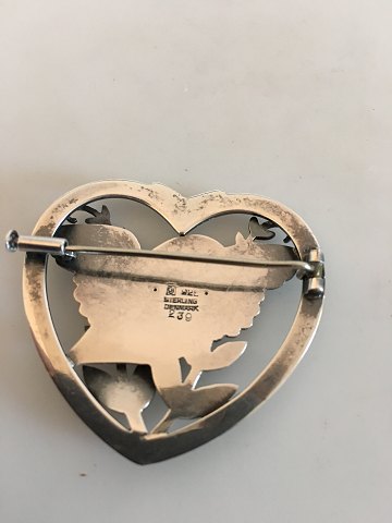 Georg Jensen Sterling Silver Heartshaped Brooch with Dove No 239. From 1933-1944.