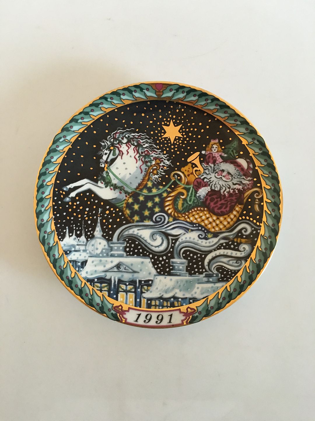 Bing og Grøndahl Santa Claus Collection 1991 Platte - Julemanden på Rejse. Designet Hans Henrik Hansen. 20 cm (7 7/8 in.)