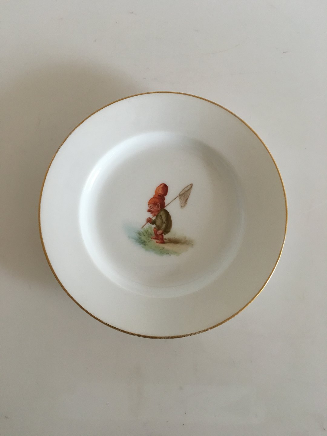 3 Tallerken 20.5 cm.. Nisse med fiskestang. Guldet på kanten er noget slidt. Ingen skår.