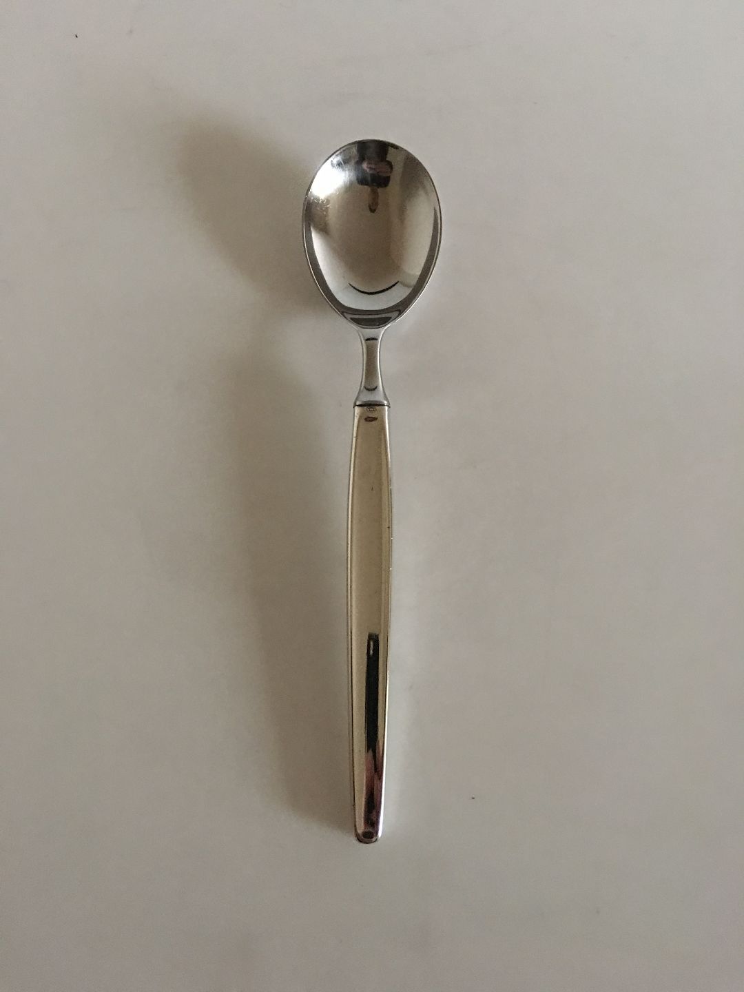 Georg Jensen Sterling Silver Cypress Serving Spoon with Stainless Steel Top No 102. Measures 23 cm / 9 1/16 in.