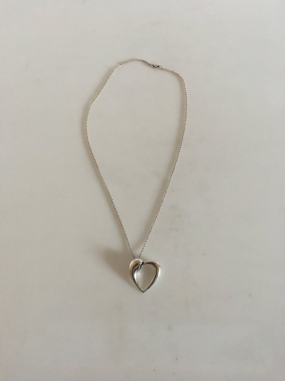 Georg Jensen Sterling Silver Necklace with Heart Pendant. The chain is 45 cm L (17 23/32"). The pendant measures 2.5 cm (0 63/64"). Weighs 12 grams (0.40 oz)