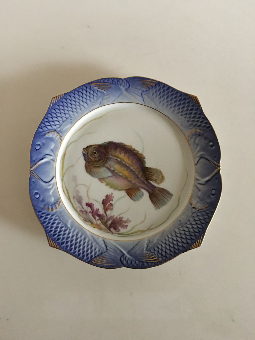 Royal Copenhagen Blå Fisketallerken med Guld No 1212/3002. Med Cyclopterus Lumpus 23 cm. I perfekt stand