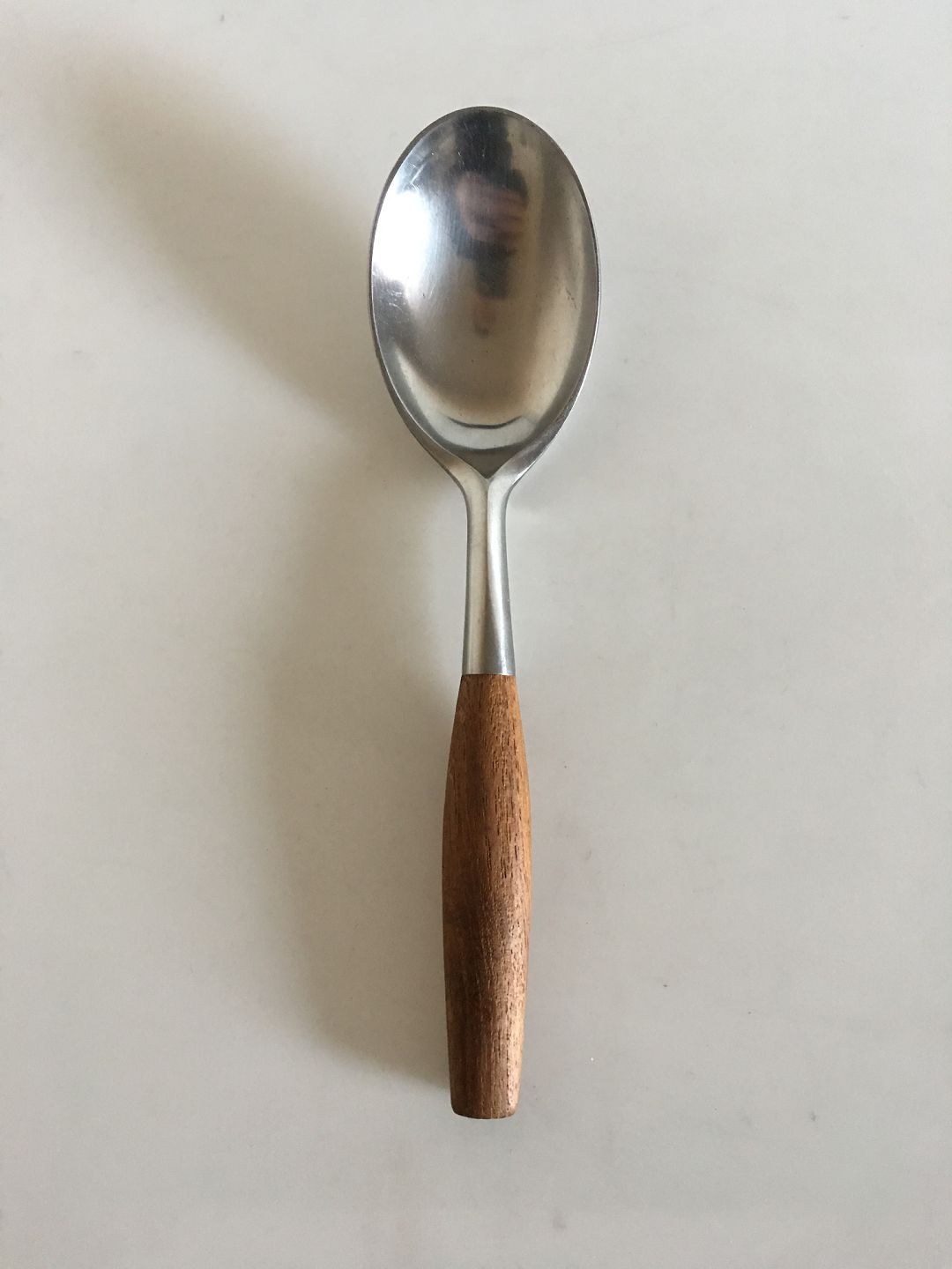 Fjorf IHQ Serving Spoon In Stainless Steel with Teak Handle. Measures 23.5 cm / 9 1/4 in. In good condition.
