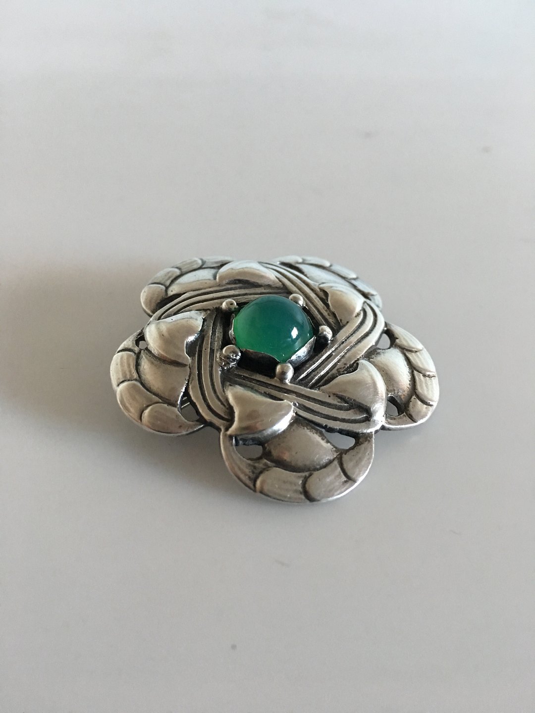 Georg Jensen Silver Brooch No 12 with Green Agate. From 1915-1927. Measures 4 cm (1 37/64"). Weighs 14 grams / 0.50 oz