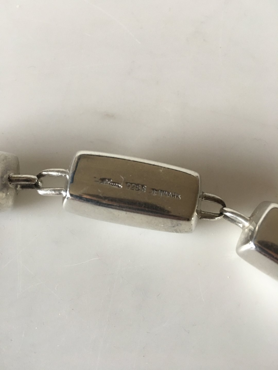 Hans Hansen Modern Sterling Silver Necklace. 52 cm L (20 15/32"). Weighs 115 grams (4 oz). In beautiful condition with only one bump in the silver "patron" link attached to the lock.
