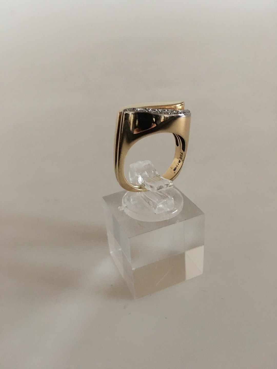 Georg Jensen 18K Partly Rhodinated Gold Ring with ten Brilliant Diamonds. Ring Size 49 / US 5. Weighs 9 g / 0.30 oz. Marked Georg Jensen & Wendel and is from 1945-1951.
