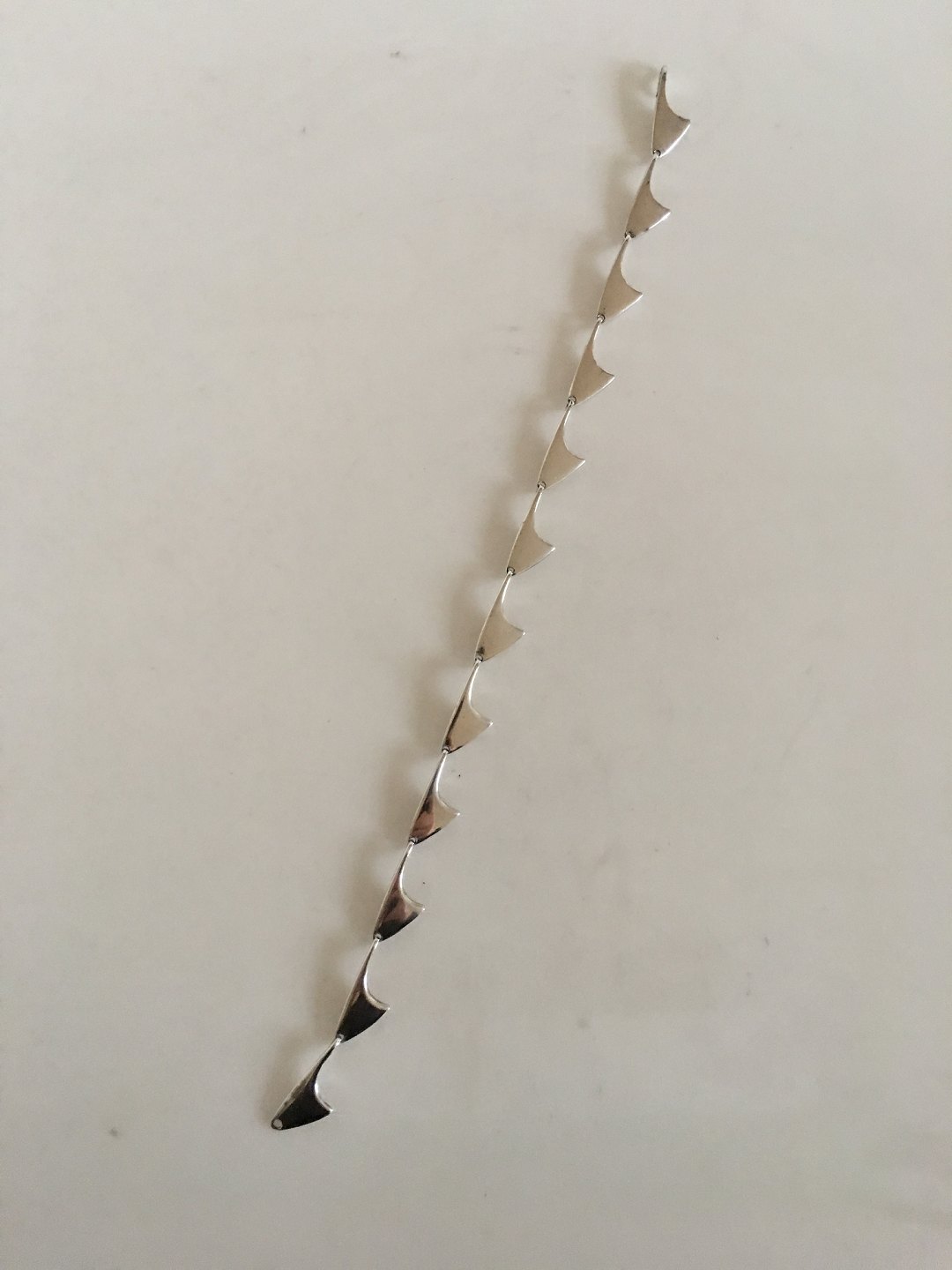 Hans Hansen Sterling Silver Shark Fin Necklace No 125. 38 cm L (14 61/64"). Weighs 43 grams (1.50 oz).