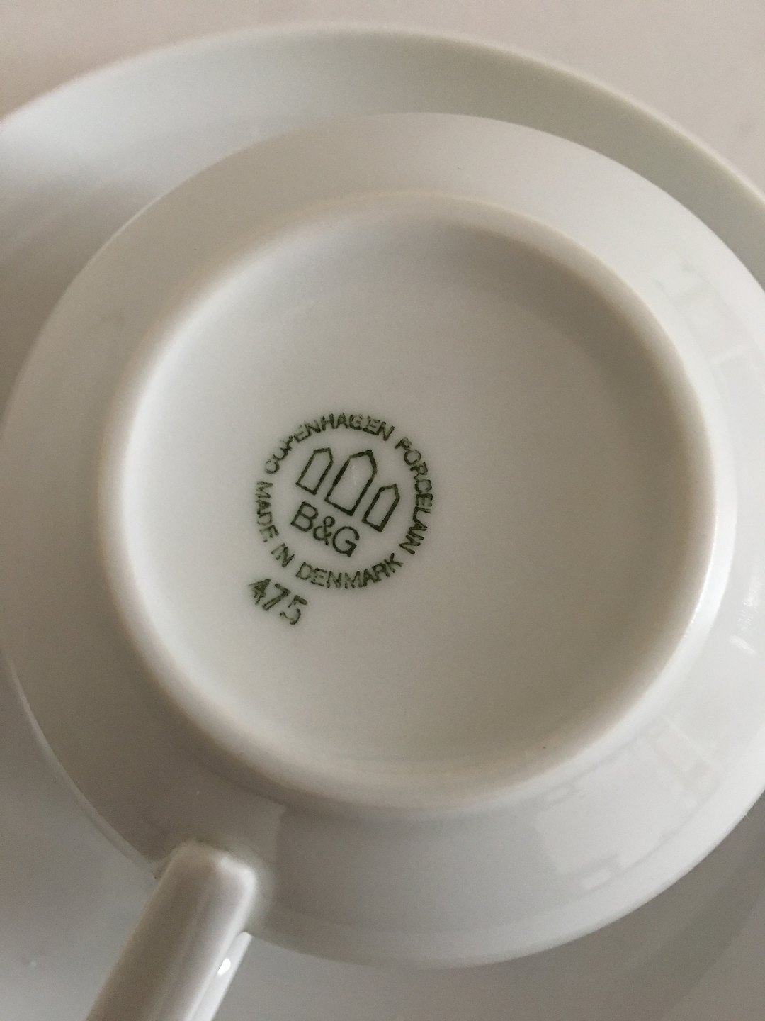 Bing & Grøndahl Komet Tekop og Underkop No 475. Kop er 6 cm H. 8.5 cm Ø. Underkop 16 cm Ø. 2. Sortering. I pæn hel stand.