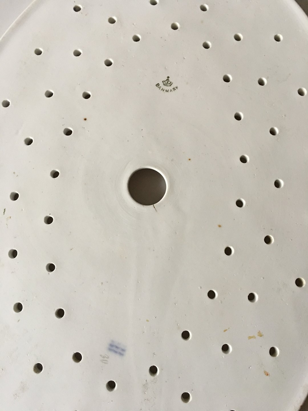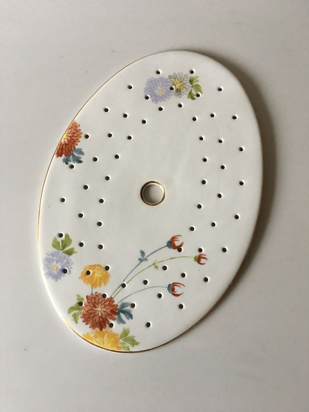 Royal Copenhagen Stel No 93 Hvid med Blomster og Guldkant Rist. 37 cm. Passer til ovalt serveringsfad 47 cm. Har en hårrevne (se billede). Sjældent stel fra 1894-1898. Håndmalet.