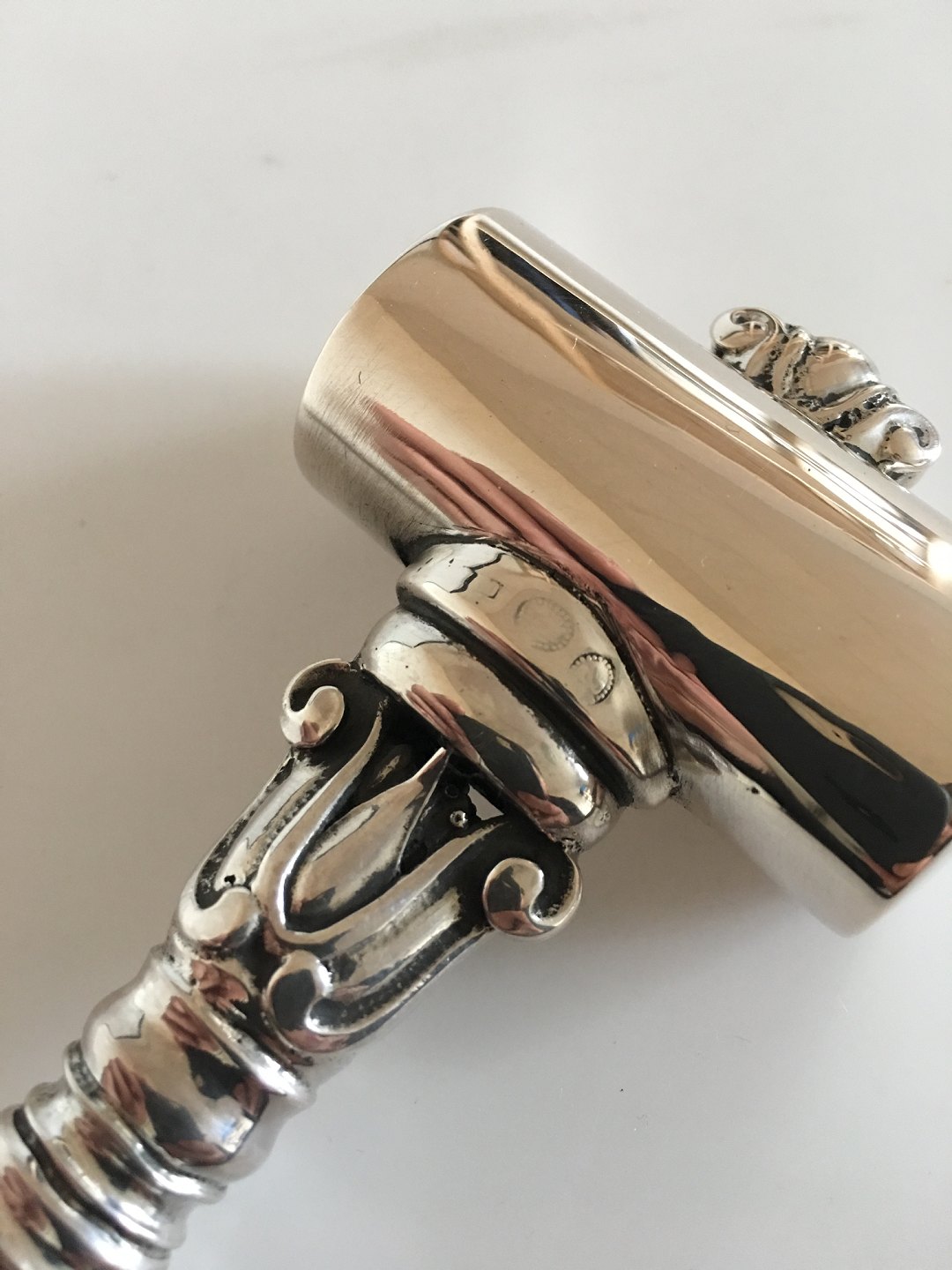 Georg Jensen Silver Acorn Table Hammer with Ivory Handle. 22 cm L (8 21/32"). Weighs 270 grams (9.60 oz). In great condition. With early marks from the 1920's.