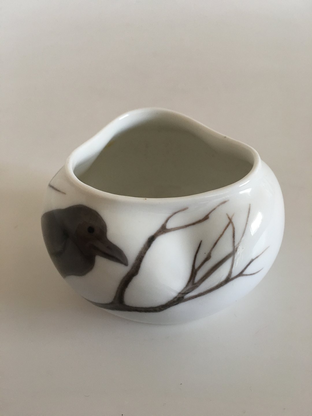Royal Copenhagen Art Nouveau Bowl / Vase No 472/172. White with Raven Motif. 6 cm H (2 23/64"). 10 cm dia (3 15/16"). 1st Quality. In nice whole condition.